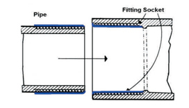 4. The interference fit design allows the pipe and fitting to fuse together. The bond is created in the loose section of the joint. Joint strength develops as cement dries.