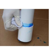 Step: 5. Then, aggressively apply the cement onto the end of the pipe (equal to the depth of the fitting socket).